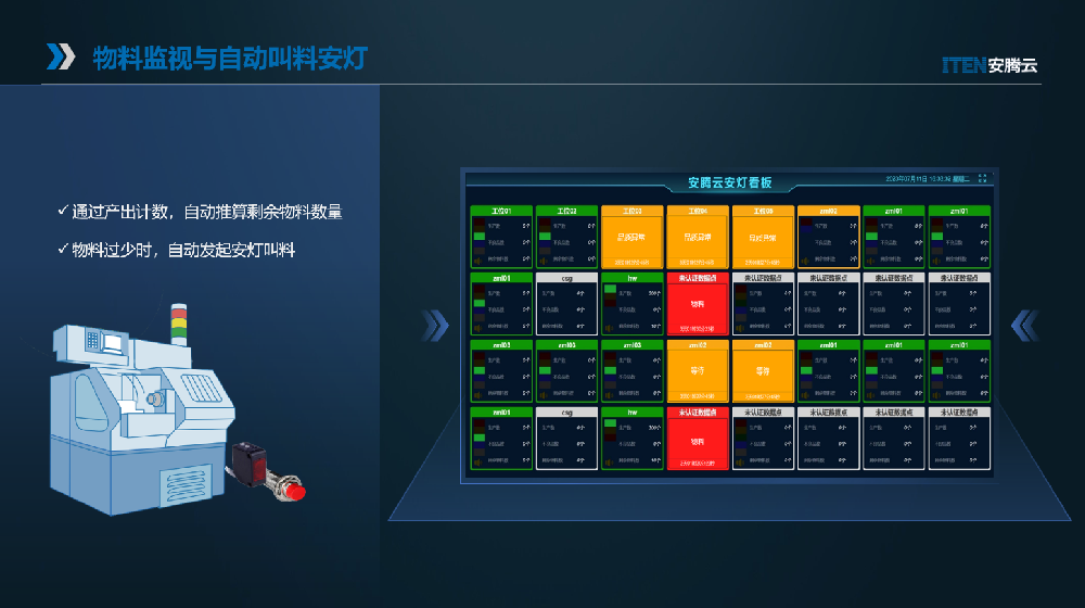 通过产出计数或者传感器方式,自动推算剩余物料数量
