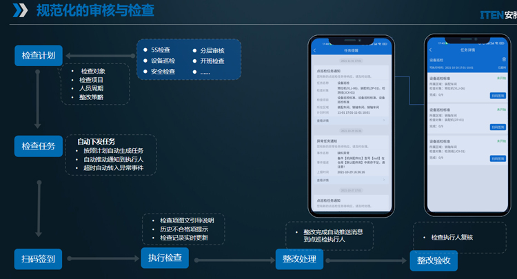 点巡检管理的实施切实保证企业的巡检管理制度能够有效落地执行。做到巡检有计划、有内容、有结果、有审核、有依据,过程严谨、操作规范,避免漏检、错检情况发生,显著提高巡检工作的质量和效率。