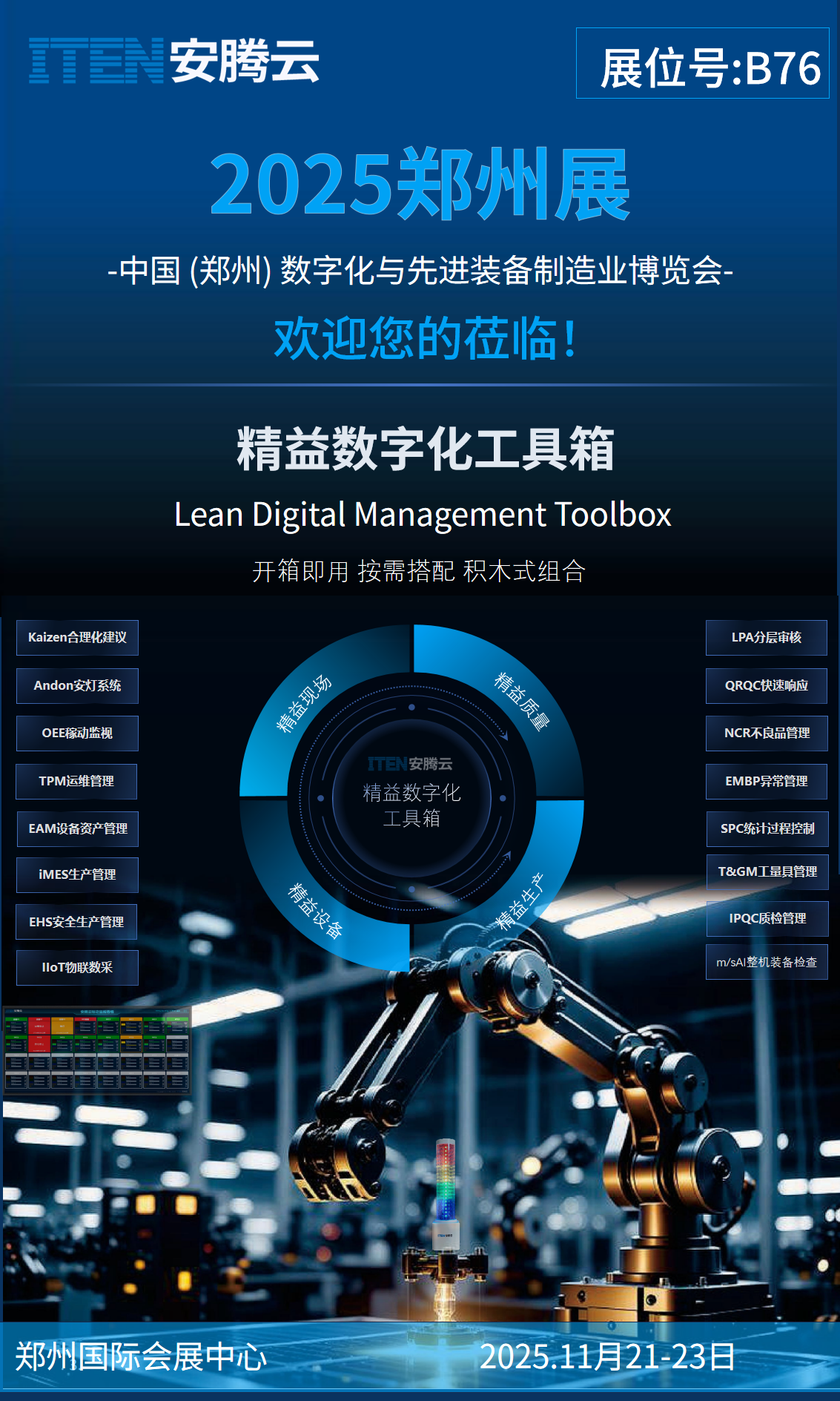 我们诚挚地邀请您莅临安腾云展位,深入了解我们的精益数字化解决方案,共同探讨如何将先进的技术与理念融入企业的实际生产运营中,携手探索智能制造精益数字化转型的成功路径。无论您是正在寻求数字化转型突破的制造企业决策者,还是关注行业前沿技术的专业人士。安腾云期待与您在郑州国际会展中心相聚,共鉴创新力量,共探智能制造精益数字化转型实践,携手共创制造业更加辉煌的明天!